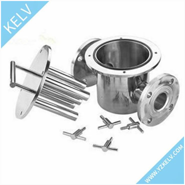 产品简介 MG系列管道强磁除铁器(简称MG除铁器),用于清除铁质污染物(如铁锈、铁屑)和其它细小的铁磁性杂质,可有效提高生产线上的产品纯度,保护关键设备免受铁质颗粒的破坏。MG除铁器采用三维有限元分析法最优化设计磁棒磁路及分布。整机为全不锈钢结构材料。其核心磁棒为钕铁硼超强永磁材料,表面磁场强度峰值大于12000高斯,为世界最高等级材料。磁棒和连接件之间采用连续不锈钢焊接。上盖可采用快开式或卫生卡箍设计。MG管道强磁除铁器广泛应用于食品、金属加工、制药、化工、矿业、陶瓷、造纸等多个行业,为客户解决生产中碰到的难题。产品的突出性能和超长寿命得到国内外知名企业的一致认可,如贵公司或客户在质量与性能上有更高的要求,MG除铁器将是绝佳选择! MG除铁器细分为2个系列:MGS系列,密集小直径磁棒排布,适合捕捉极微小的铁质;MGP系列,纸浆专用型,适合捕捉大颗粒的铁质。主要规格参数 ■ 子系列MGS/MGP ■ 口径DN25-DN600 ■ 磁场峰值(Gauss) 6000/12000 ■ 适用温度(℃) <60,高温型可定制 ■ 壳体材质304,316L ■ 设计压力(MPa) 0.6,1.0典型适用行业及流体 ■ 适用行业:食品饮料、金属加工、制药、化工、陶瓷、造纸等 ■ 适用液体类型:含微量铁质颗粒的液体。 ■ 主要分离作用:捕捉铁质颗粒 ■ 分离类型:磁性捕捉 除铁器如何清理: 流体除铁器清理频率:根据处理物料中铁杂质的含量多少、每小时物料处理量等参数确定,一般磁棒表面吸附的粉状铁杂质厚度不宜超过10mm,定期及时清理,从而保持 佳的使用效果。 流体除铁器清理步骤:清理流体除铁器时,首先磁芯固定螺丝打开,取出磁芯,清理吸附在磁棒表面的铁杂质,然后再将磁芯安装到筒体,固定,安装磁芯时检查密封垫圈是否完全卡在垫圈卡槽内,避免垫圈错位引起工作过程中物料泄露。在清理磁棒表面的铁杂质时,可以借助厚的棉手套、抹布、托盘等工具,有需要时,可以用水清洗。 |