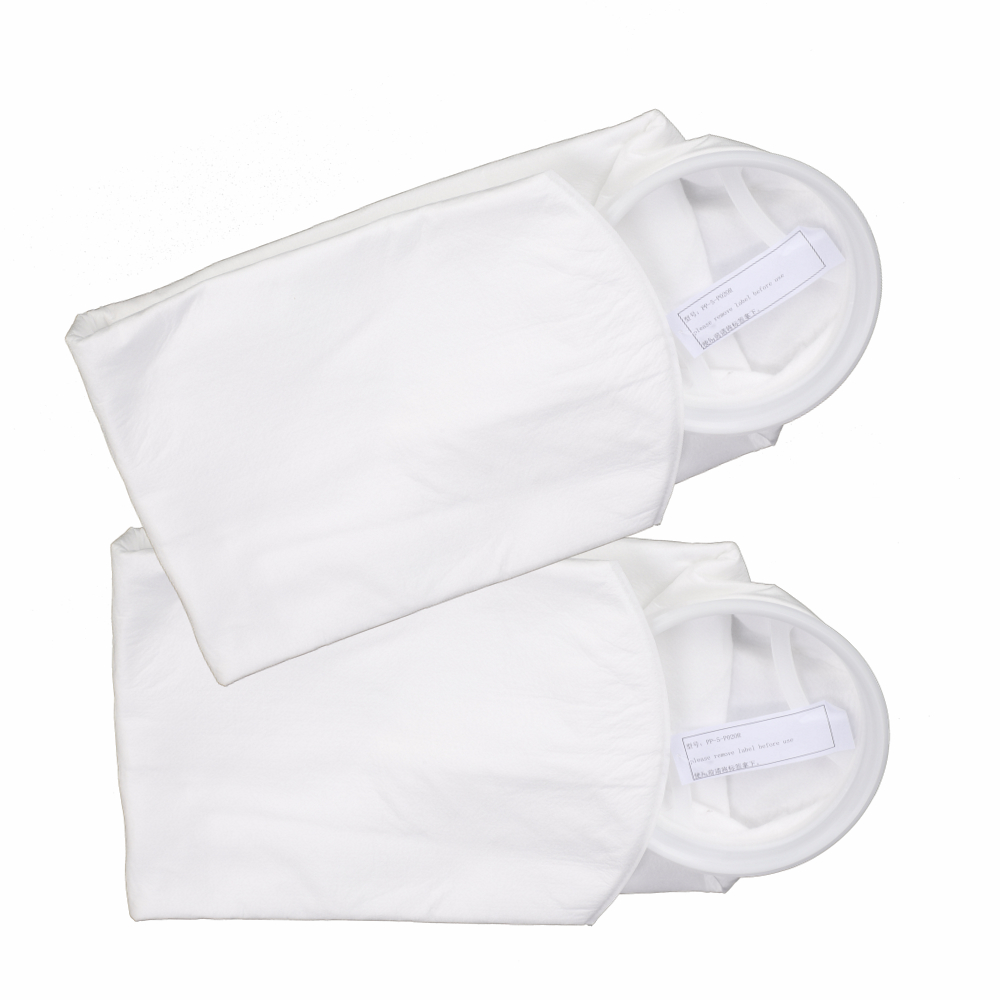材质: PP(聚丙烯)、PE(聚酯)、PTFE(聚四氟乙烯)、NO(尼龙)、不锈钢 领环:不锈钢环、塑料环。 1.毛细纤维吸油滤袋 由预过滤层、主过滤层和丝网罩三部分组成。是专为有效地吸附液体中的油脂而设计的。过滤材料中的空隙率高达80%,大大提高了产品的使用寿命。吸油量高达滤袋自身重量的12~20倍(具体因流体和油脂特性、流速而异) 2.绝对精度无缝滤袋 由纯聚丙烯毛细纤维热熔喷成型。外层为加厚深层过滤材料,用以提供分层过滤;内套大口径滤芯,用以进一步增强整体的深层过滤效果,提高容纳杂质能力。使用寿命平均为普通聚丙烯滤袋的五倍以上。最高过滤精度为3um。领环为塑料环。 3.丝网滤袋 供选材料有尼龙单丝网、聚酯单丝网、聚丙烯多股丝网/316不锈钢、最高过滤精度20um 绝对过滤精度、高韧性、抗破坏、无纤维游离、耐高温可反复使用。